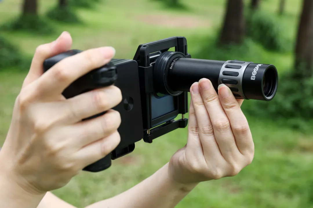 首先說說新款樂觀單筒望遠鏡,樂觀系列是博冠歷史最悠久的系列,截至今年上市已是第20年,行業內生存周期這么長久的產品屈指可數。本次博冠帶來了樂觀3代單筒,重量僅168g,而且標配手機拍照支架,并提供了藍牙手柄的選配方案,使這款小單筒望遠鏡能搖身一變成為手機長焦鏡頭,不僅能看還能拍,及便攜性和多功能性于一身。