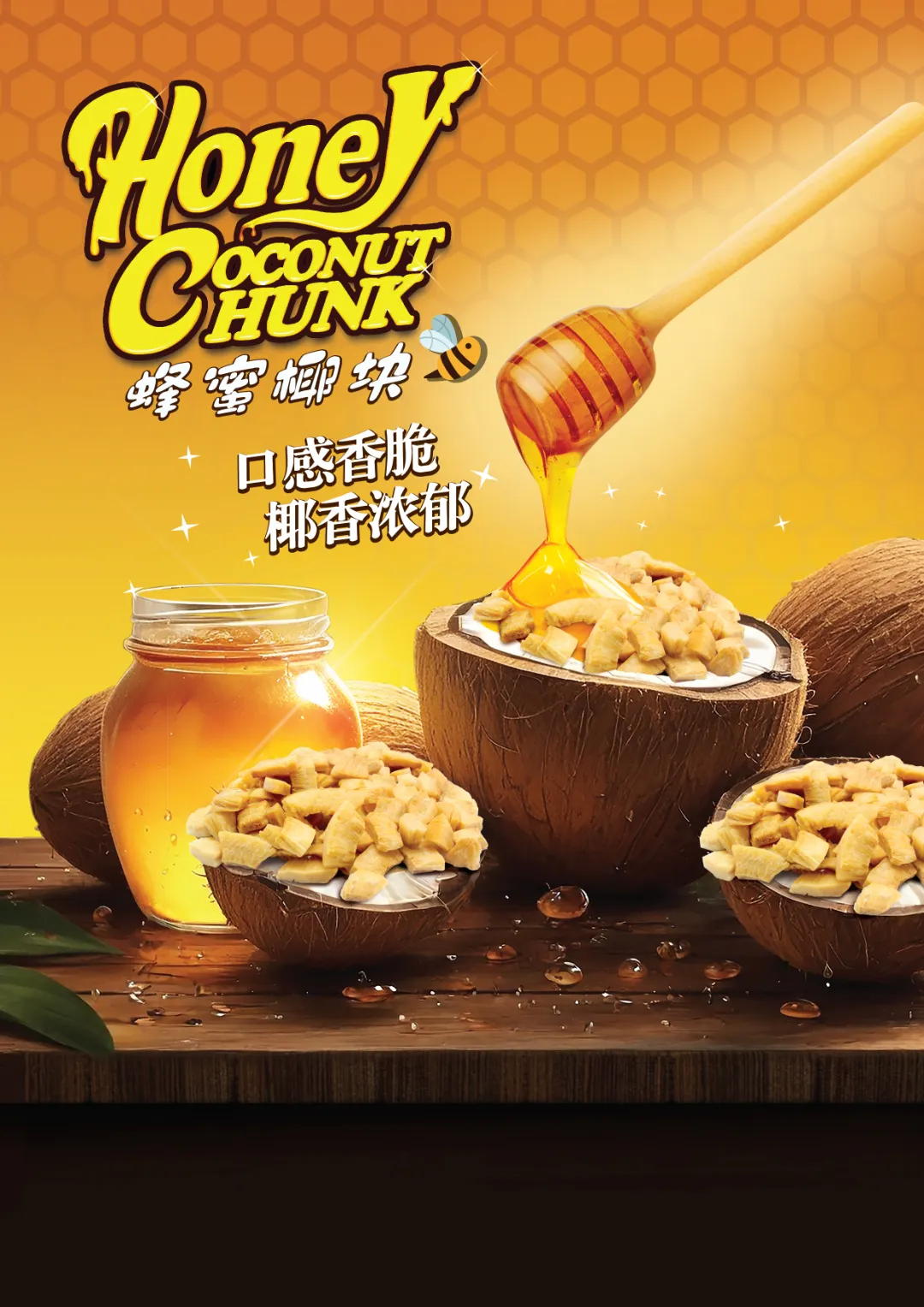 蜂蜜椰塊是一種以椰子為主要原料,搭配香甜蜂蜜制成的健康零食。選用優質椰肉,經過精細烘焙與蜂蜜調味,口感酥脆香濃,帶有自然椰香與蜜甜。無添加防腐劑,低糖低脂,適合追求健康飲食的人群食用。無論是休閑時光、辦公小憩,還是親友聚會,蜜糖椰塊都是美味又安心的選擇。
