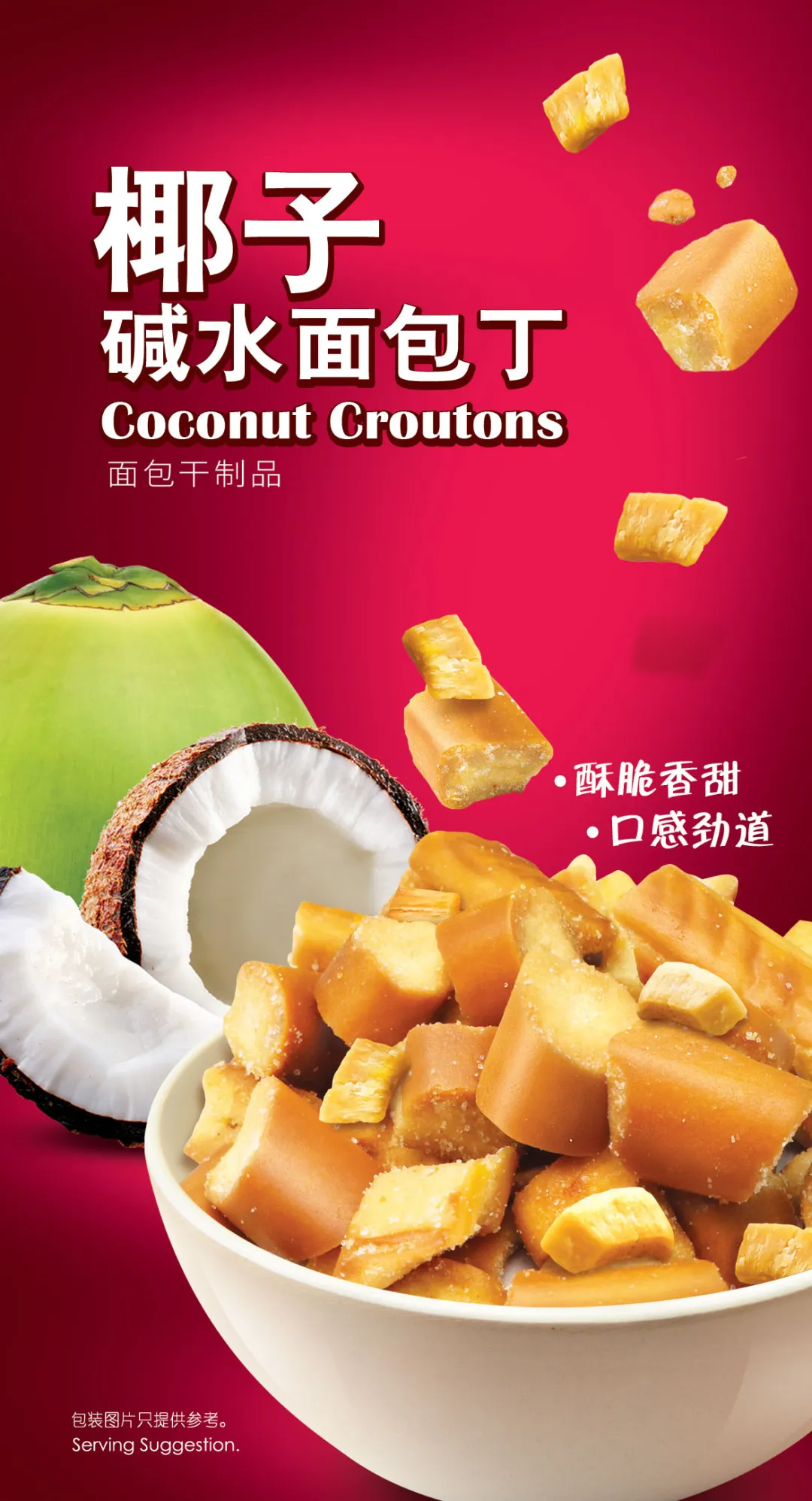現今的生活方式和飲食習慣,逐漸讓多數人體酸性化,堿水面包里的堿能幫忙改善人體的酸堿度。堿水面包和香脆的椰子完美配合,口感嘎嘣酥脆,是您絕不能錯過的小吃。