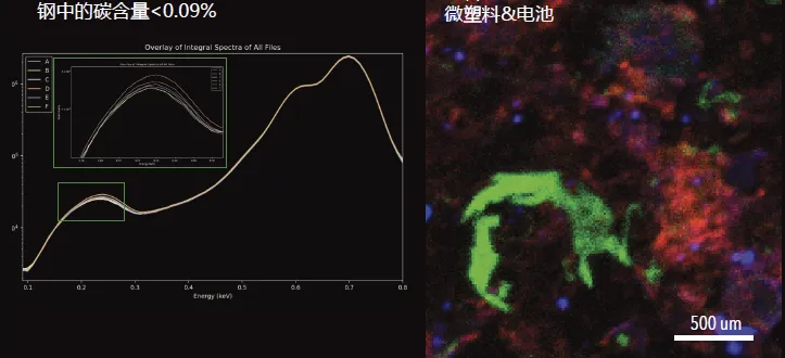 產品簡介:具備真空環境,可對 B 元素及以上全元素采集;對含有C、O、N等輕元素的有機物質檢測靈敏度達數個ppm~100 ppm量級 ? 檢測靈敏度是SEM-EDS的1000倍以上,分析薄膜樣品檢測下限可達亞埃級膜層厚度 ? 化學成像空間分辨率優于3~5微米(μm),檢測速度最快可達5毫秒/點 ? 樣品臺可傾轉,可有效去除衍射峰 ? 專用軟件模塊適用于半導體晶圓及器件和礦物學,具有重量百分含量的定量分析功能。
