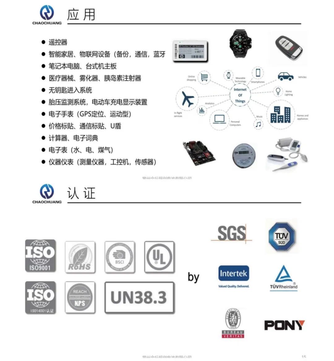 常州金壇超創電池有限公司是一家集設計、研發、制造、銷售的綜合性鋰錳扣式電池高新科技企業。成立于1995年,超創始終以技術研發為驅動,推動產品迭代升級,勇攀產業高峰。開發出超高容量、低內阻、高脈沖、寬溫、長壽命、放電平穩、安全無污染等特點的CR電池。被廣泛應用于電子設備、醫療器械、物聯網設備、儀器儀表等領域。